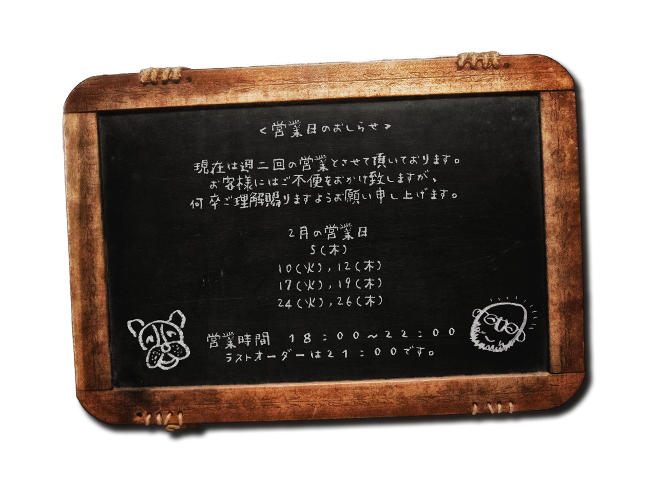 営業時間18:00~22:00(ラストオーダーは21:00となります)